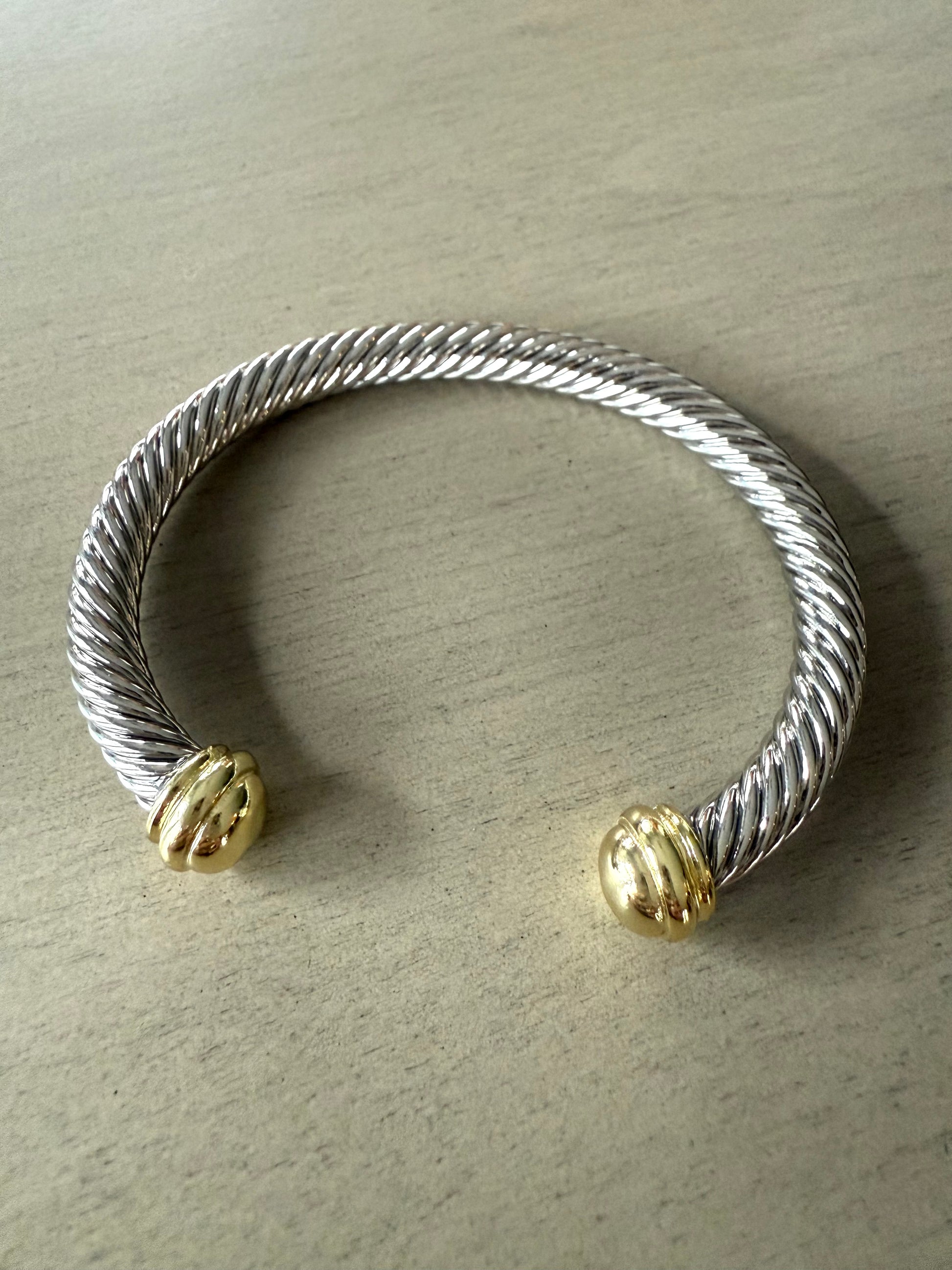 Expertly crafted from silver, this big cable cuff bracelet exudes sophistication and style. The bold design adds a touch of elegance to any outfit. Made with quality materials, it is durable and comfortable to wear. Elevate your accessory game with this stunning piece.