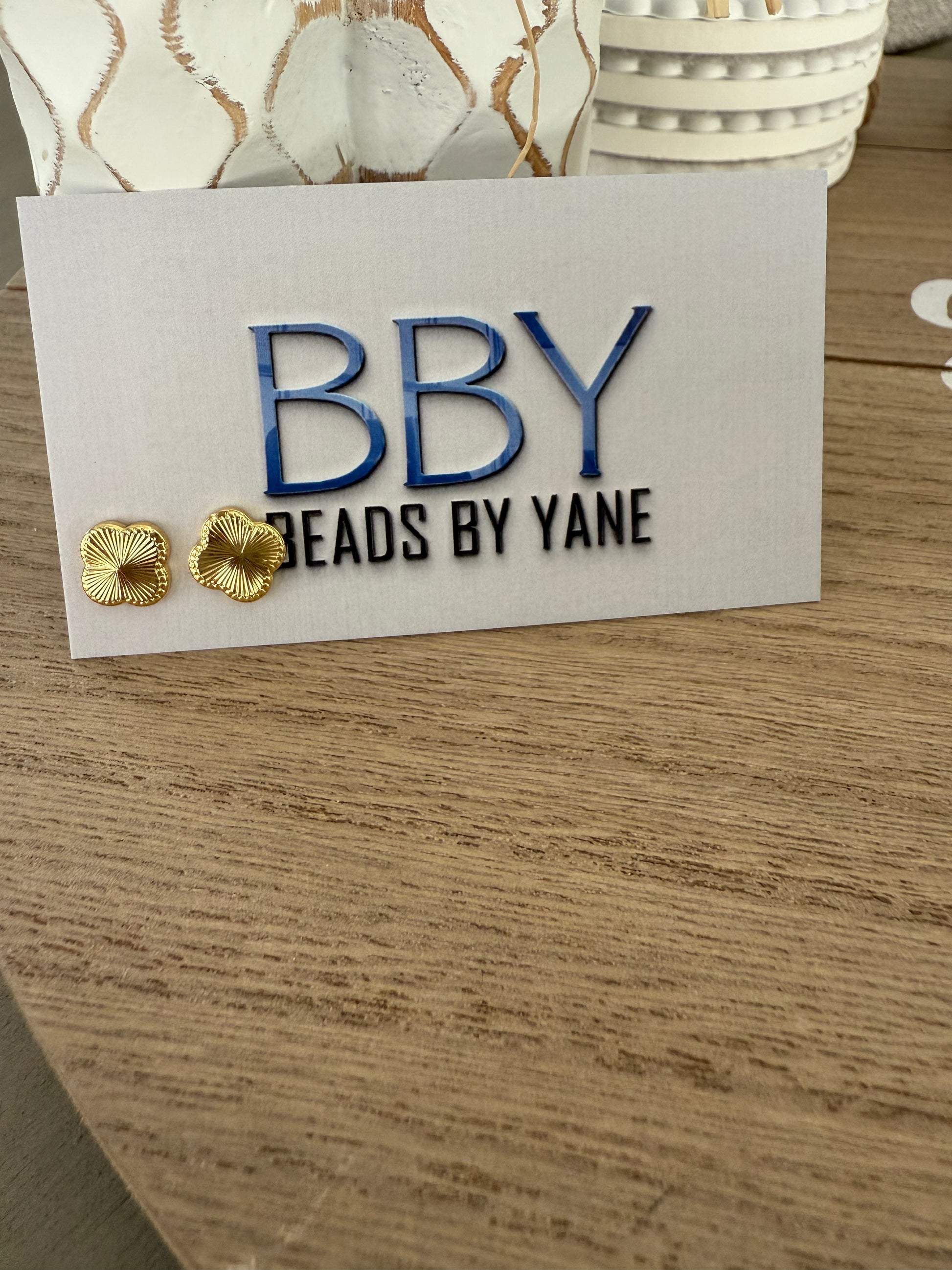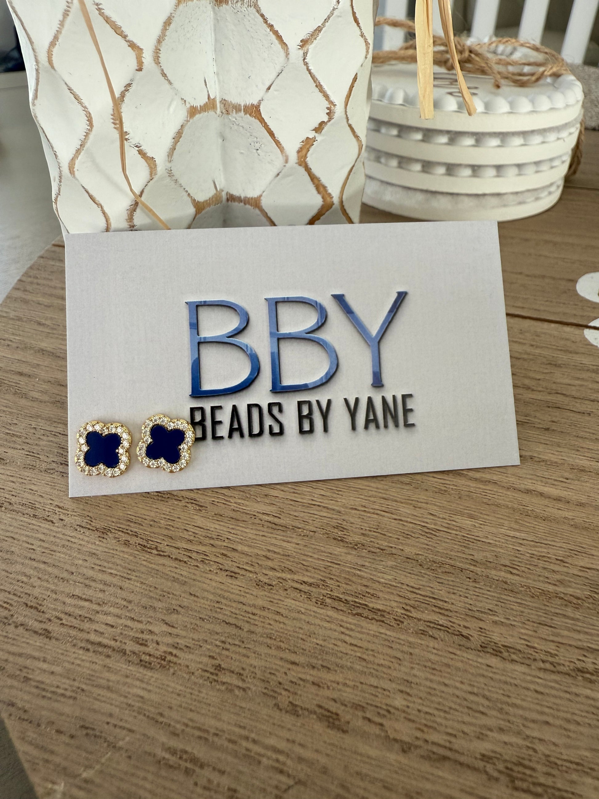 Elegant clover charm stud earrings in gold-plated detail with green, navy, or all-gold styles. Lightweight, versatile, and timeless—perfect for everyday or special wear.