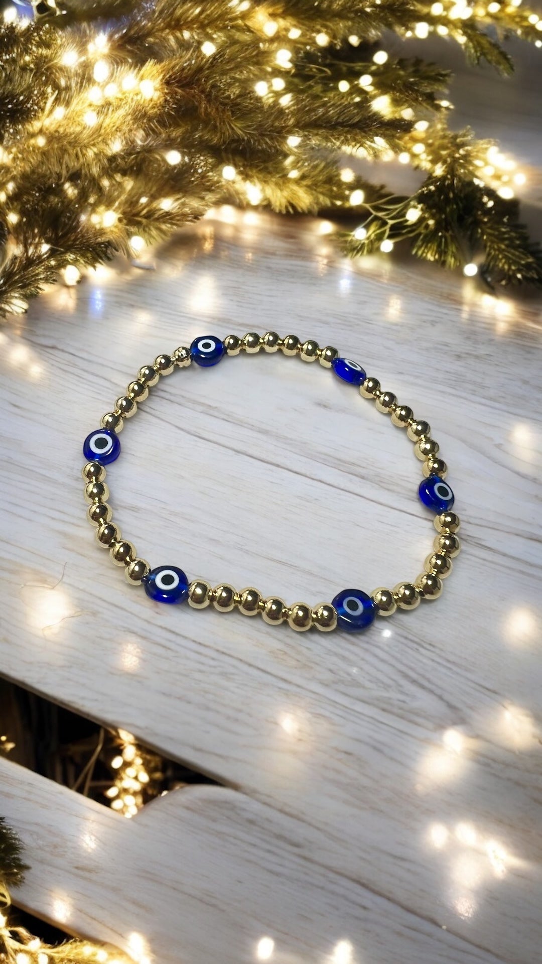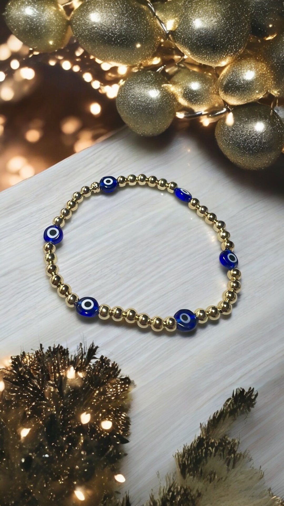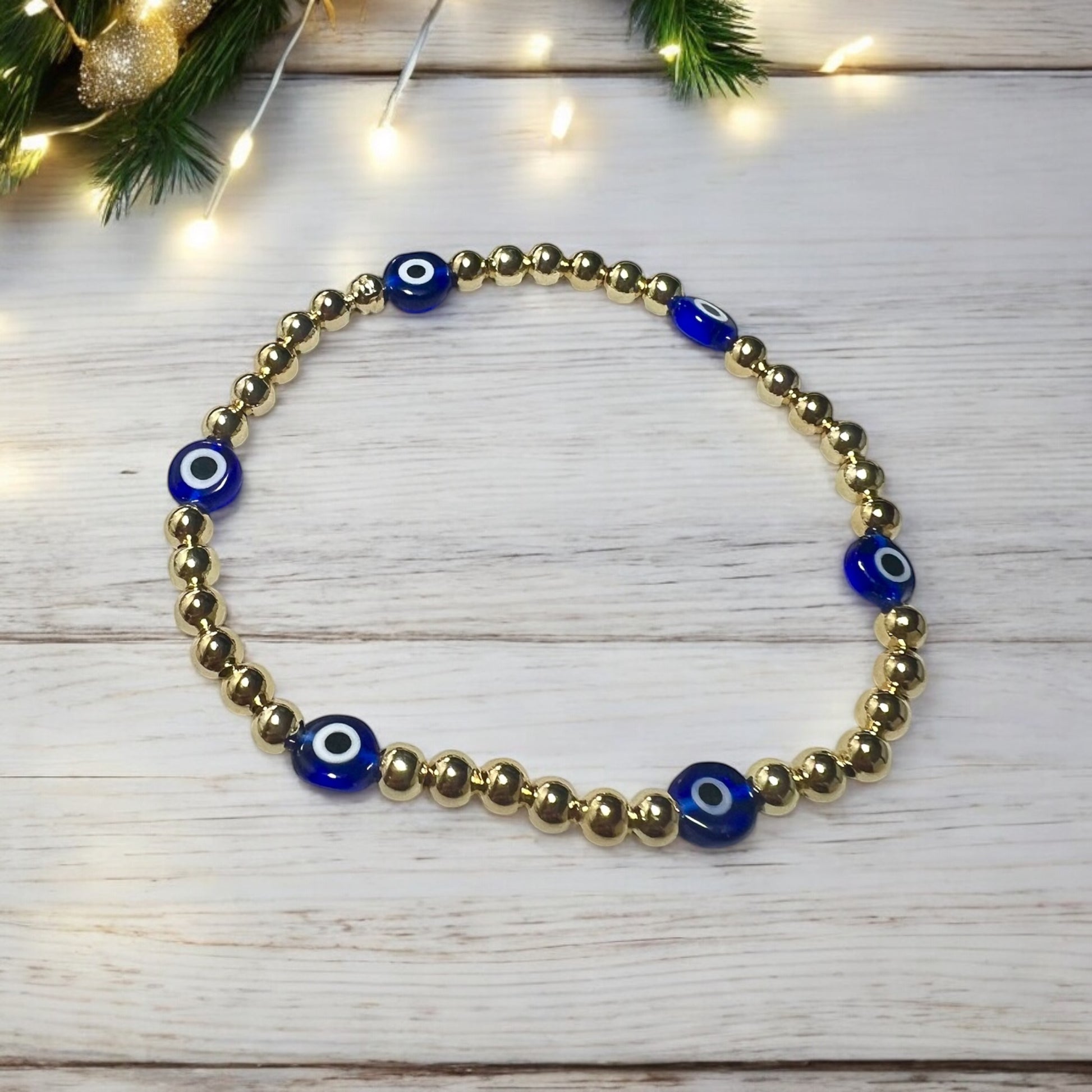 Protect yourself from negative energy with our Evil Eye Gold Bracelet. The eye symbolizes good luck and will keep you safe from harm. Add a touch of style and positivity to your outfit with this beautiful and meaningful accessory. Perfect for everyday wear.