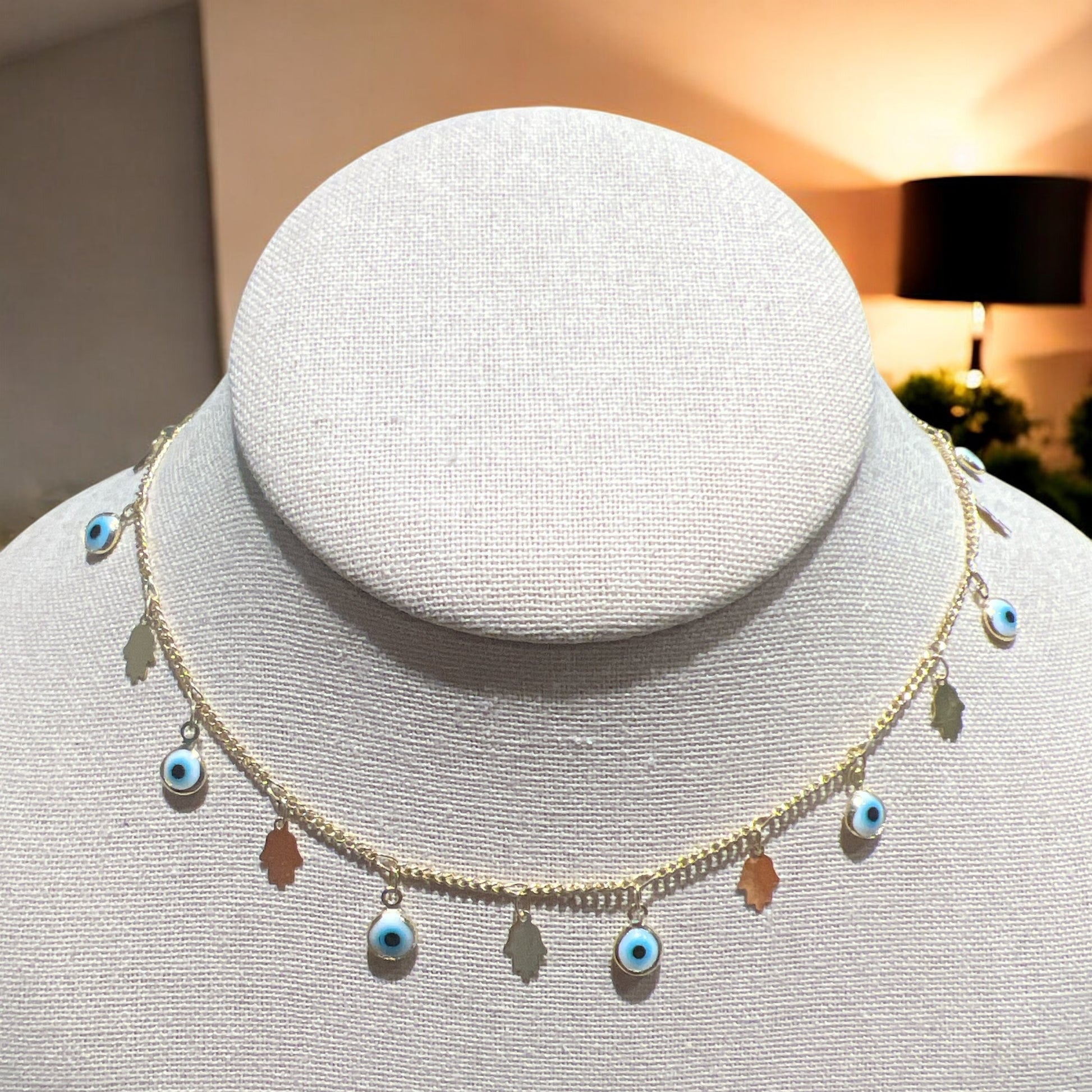 This Evil Eye Necklace is a beautiful and unique piece of jewelry that is steeped in cultural and spiritual significance. The intricate design and stunning craftsmanship make this necklace a true standout. Wear it for protection against negative energies or simply as a stylish accessory.