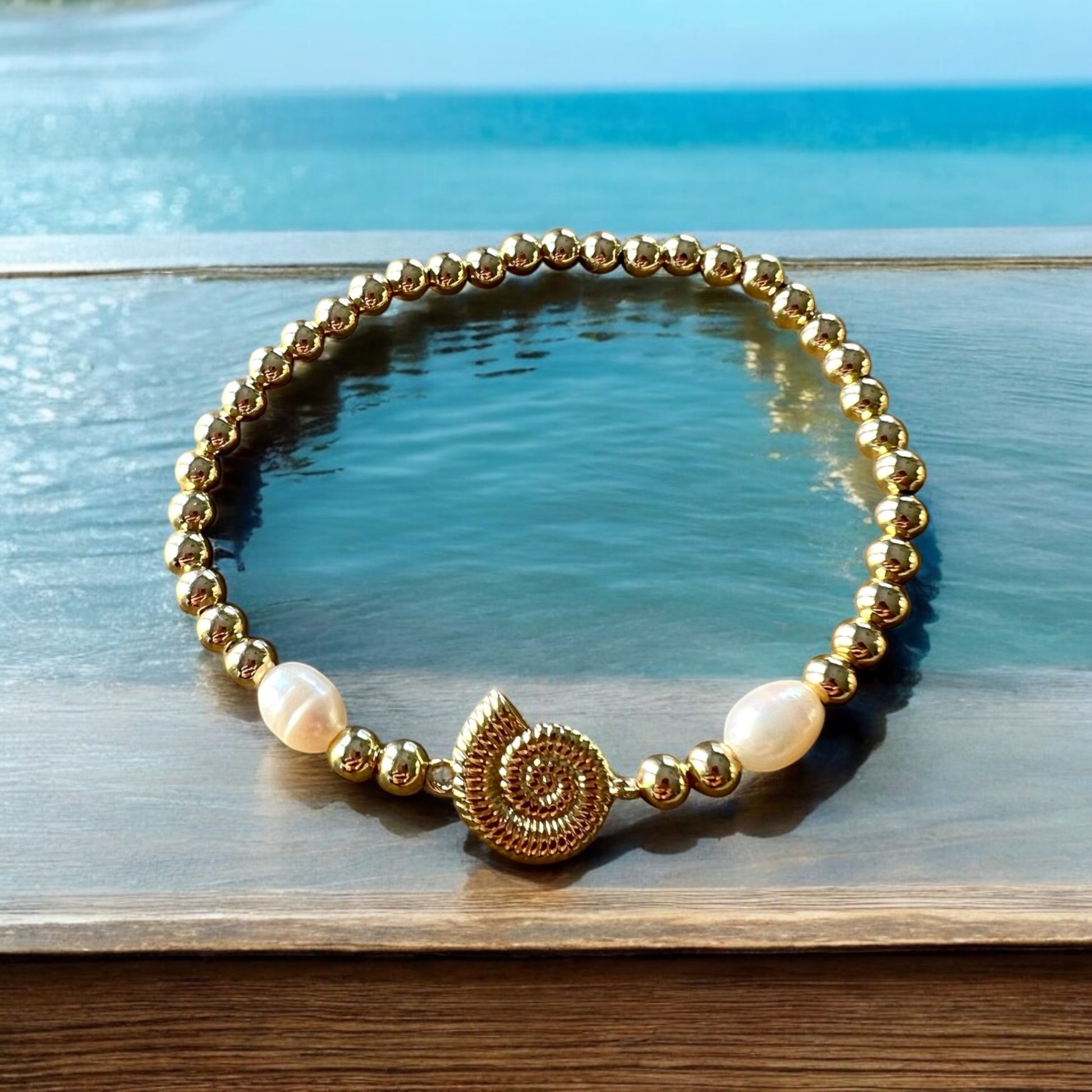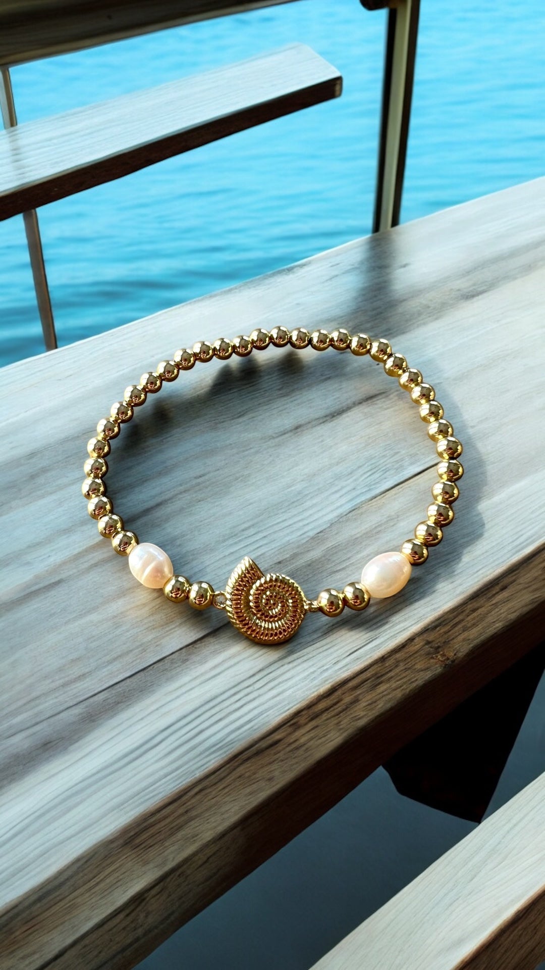 Indulge in luxurious beauty with our Gold Shell Bracelet. Made with a stunning gold shell design, this bracelet will add a touch of elegance and sophistication to any outfit. Perfect for any occasion, this bracelet will make you feel confident and stylish. Elevate your look with our Gold Shell Bracelet today!