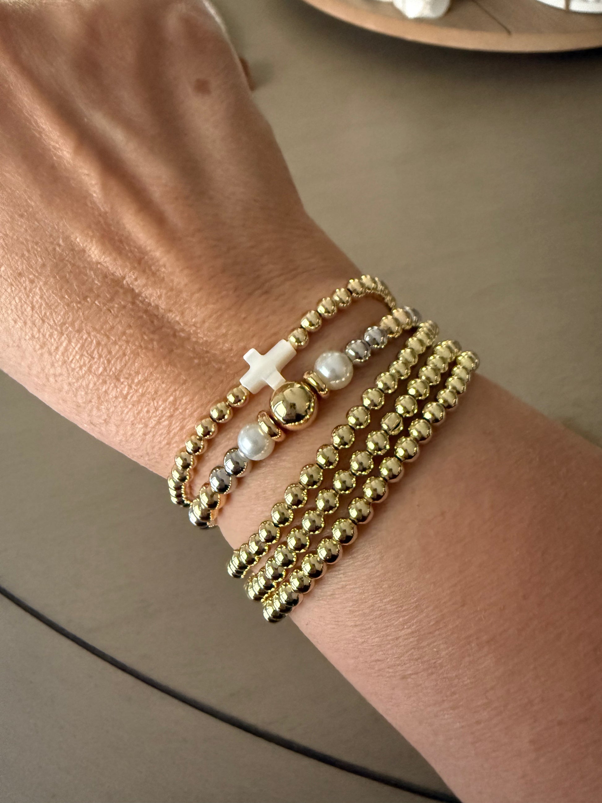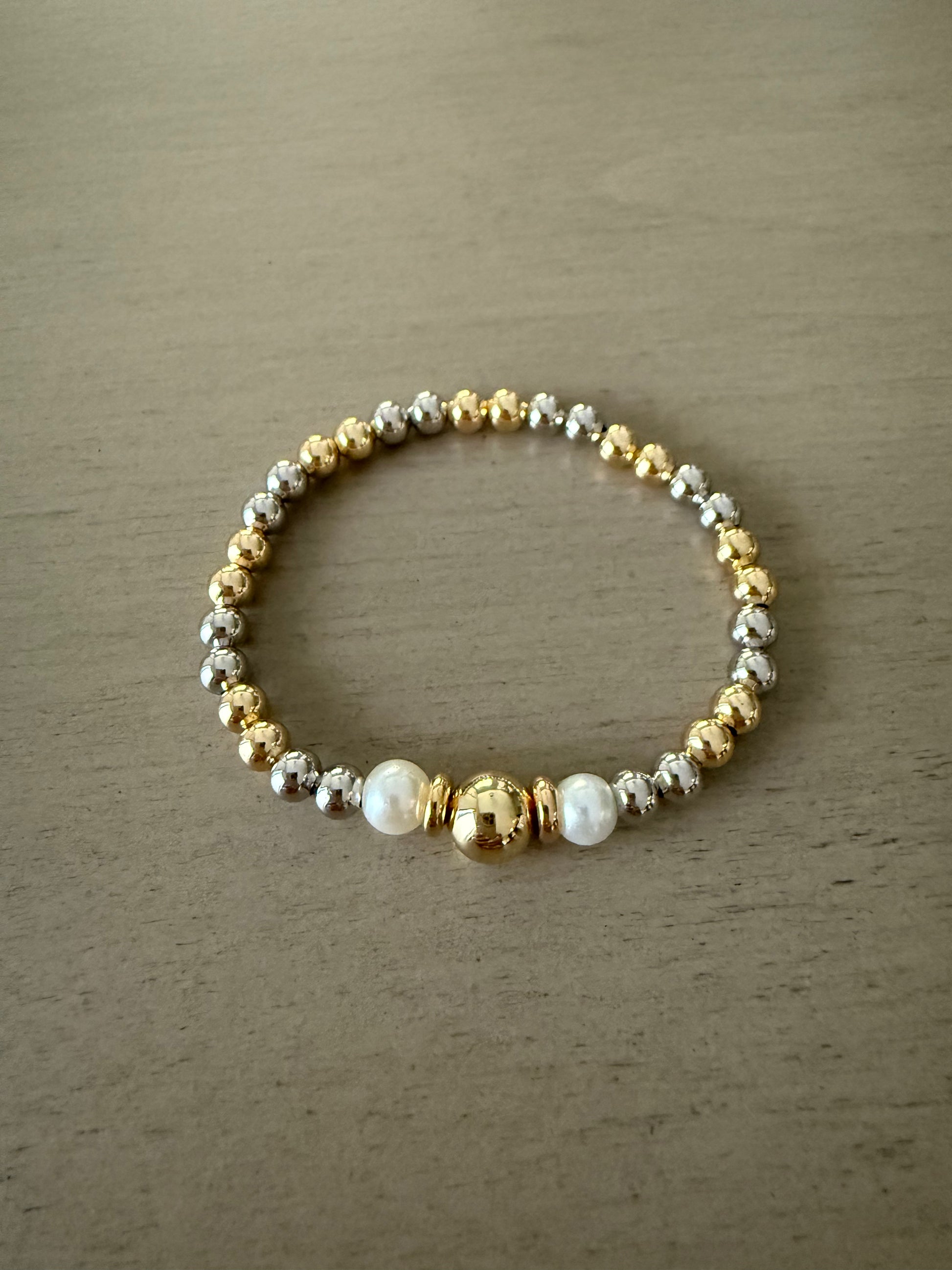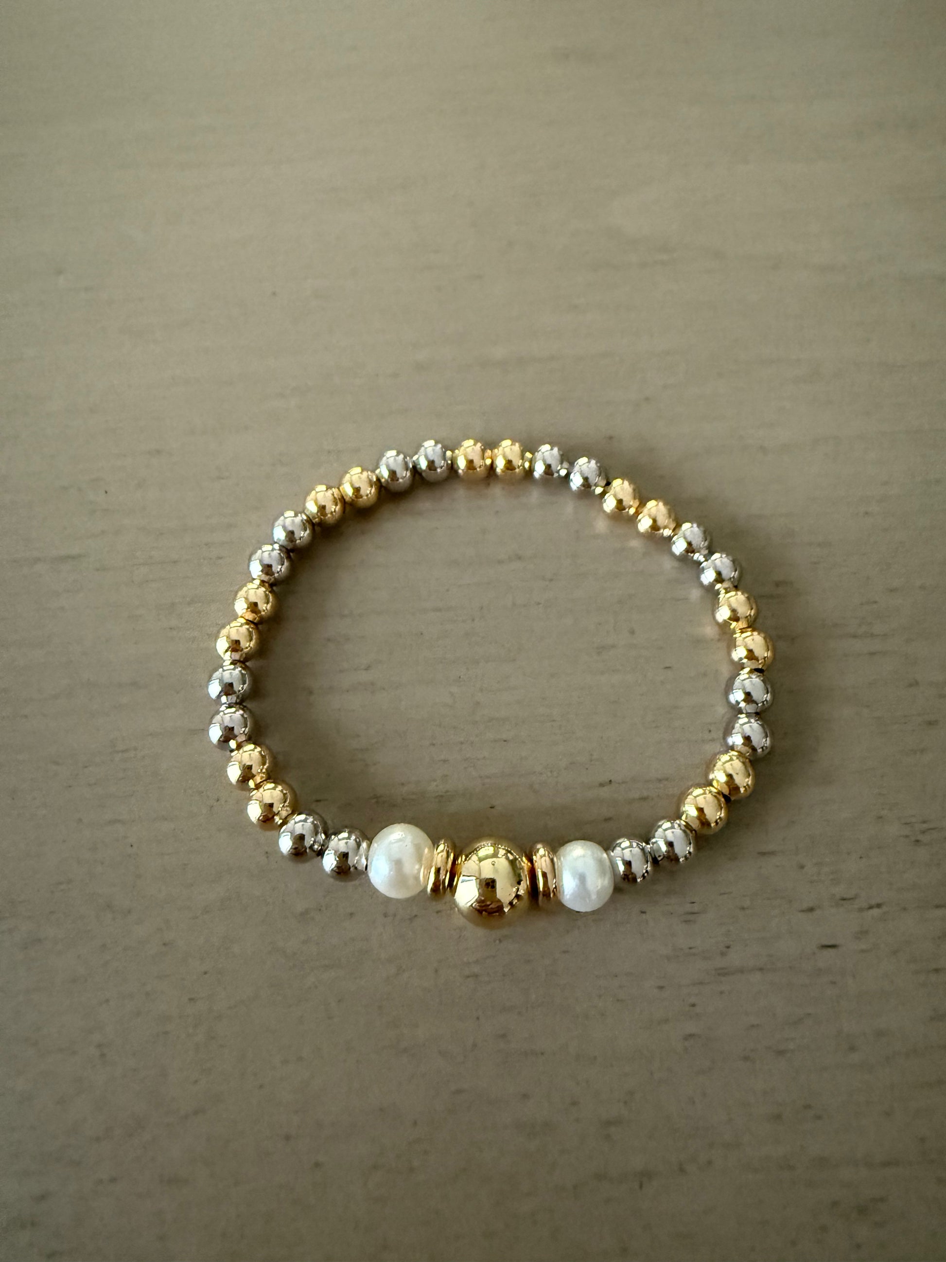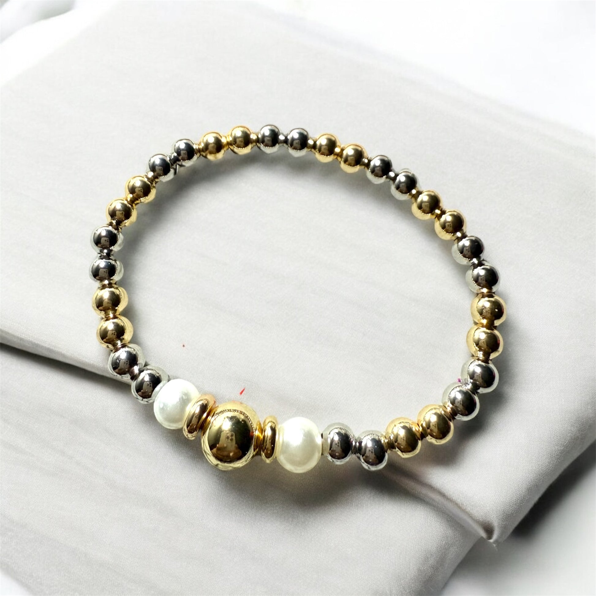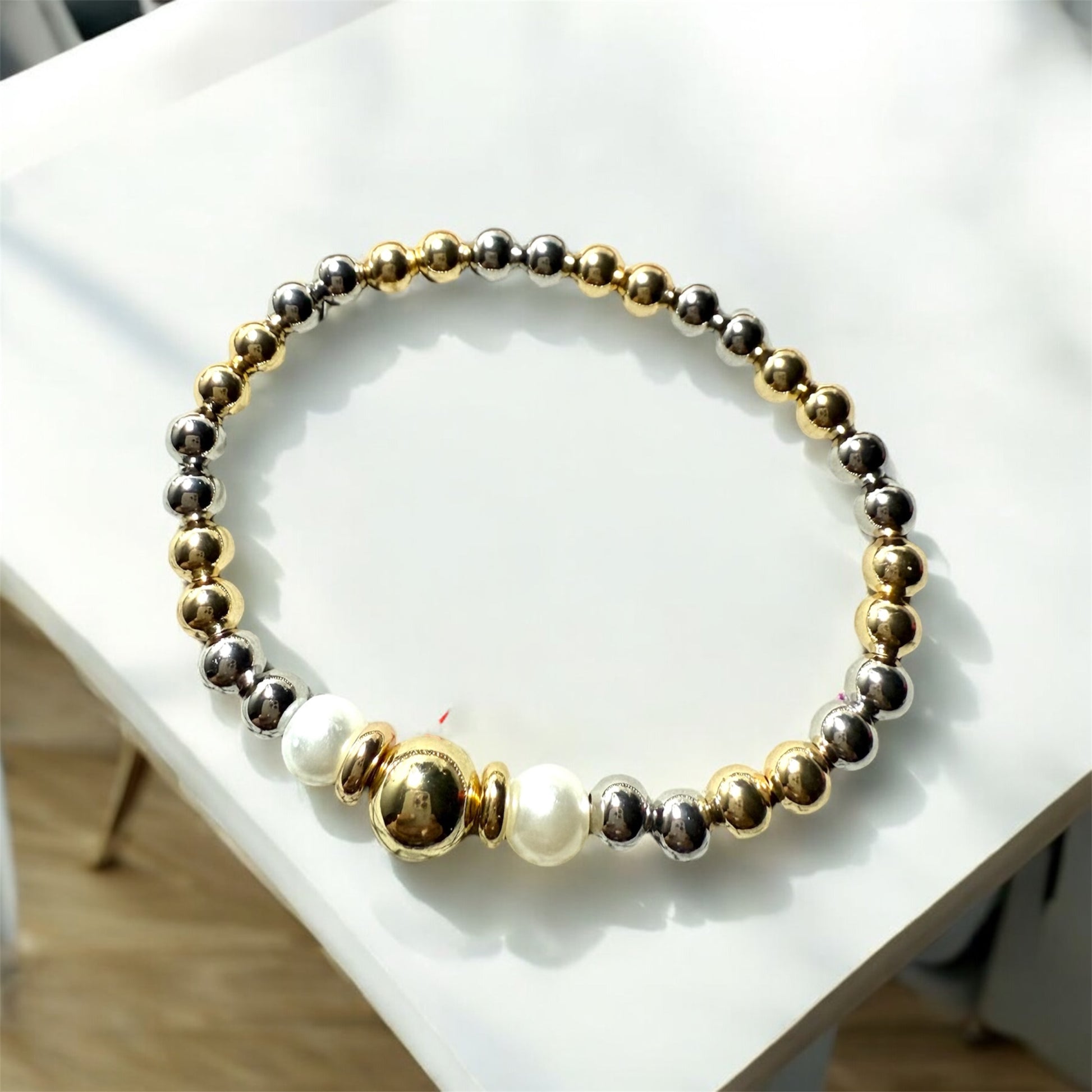 Elevate any outfit with our elegant gold and silver bracelet. The perfect blend of two tones adds a touch of sophistication and versatility to your jewelry collection.