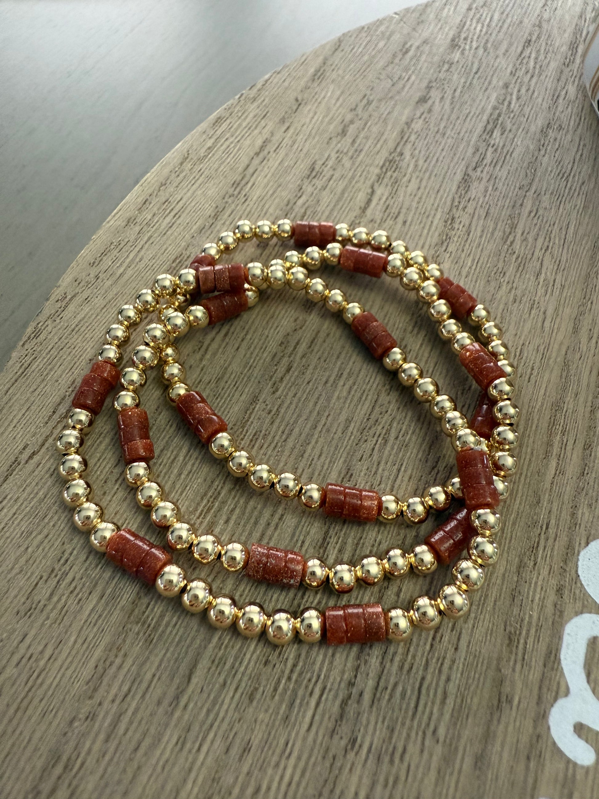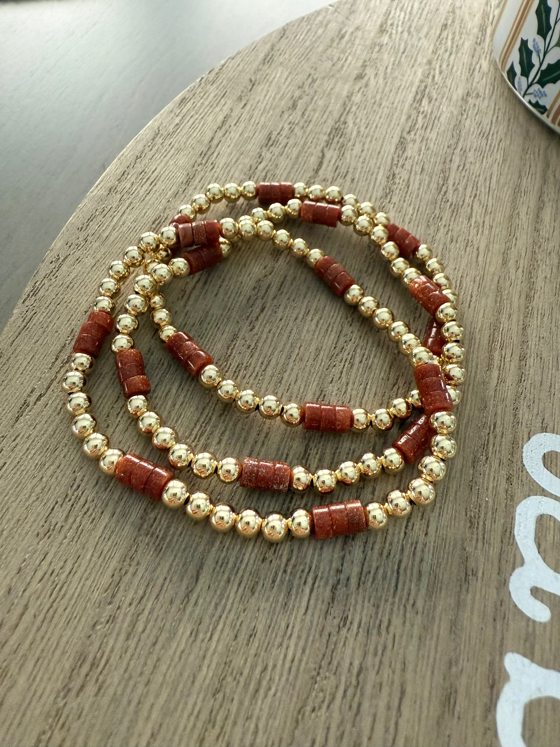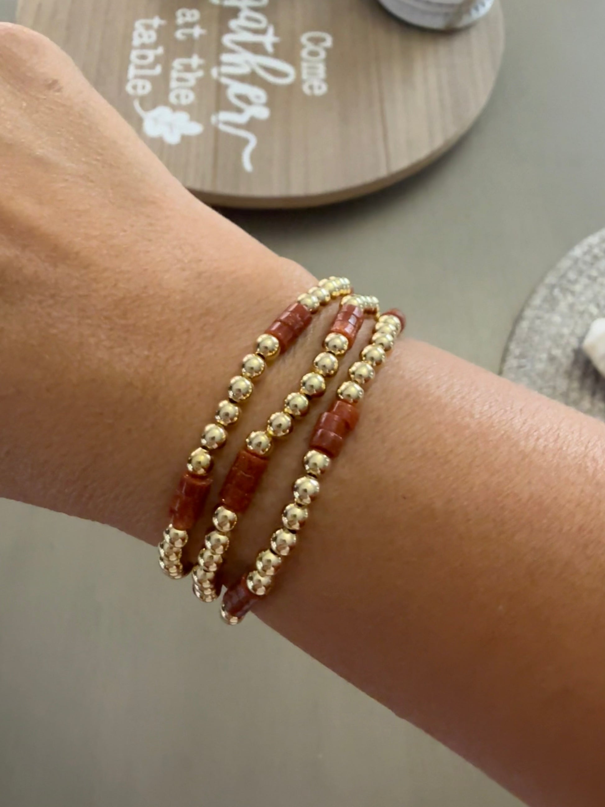Set of 3 beaded bracelet with warm terracotta beads and golden accents — the perfect touch of elegance for the fall season.