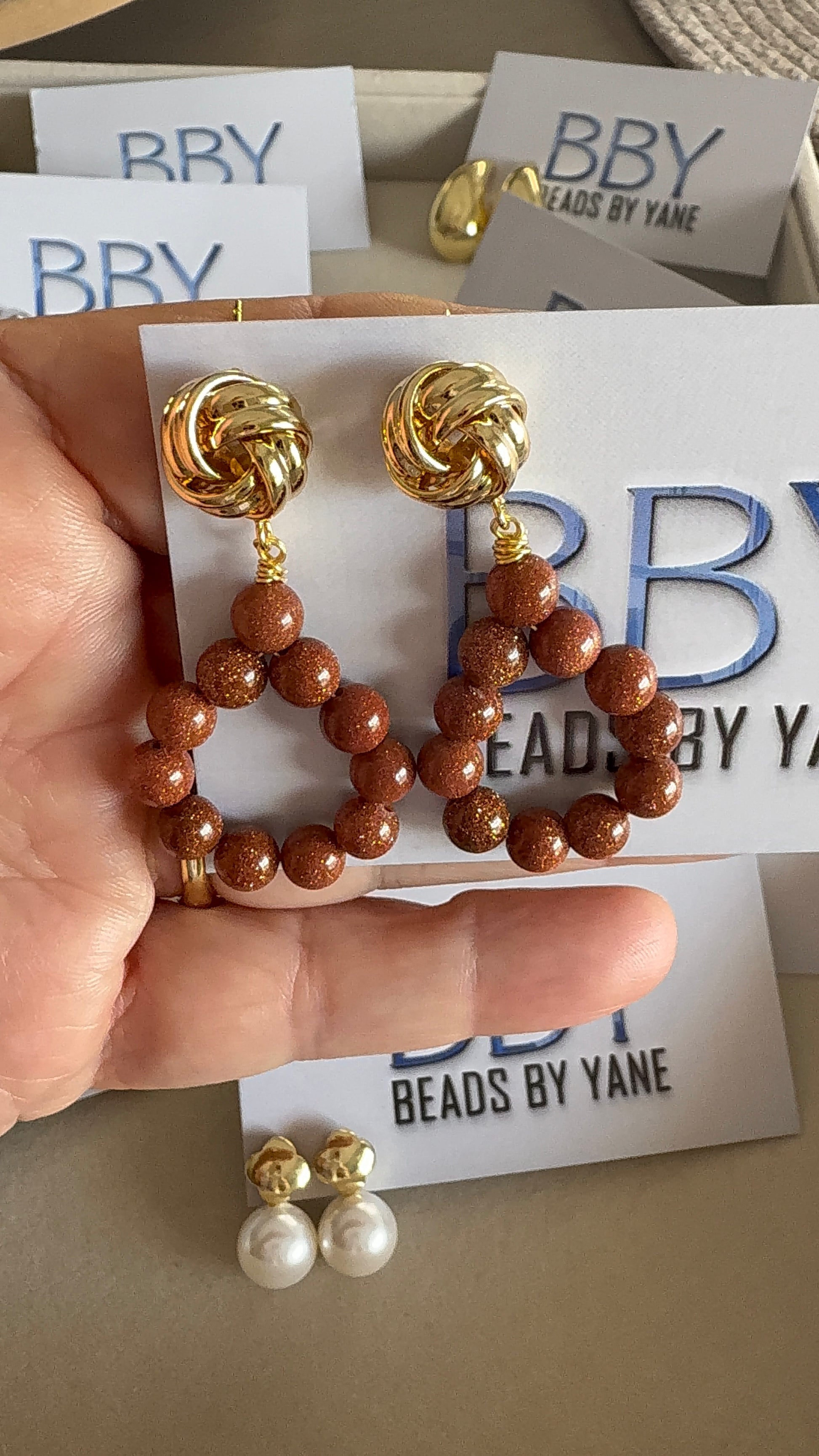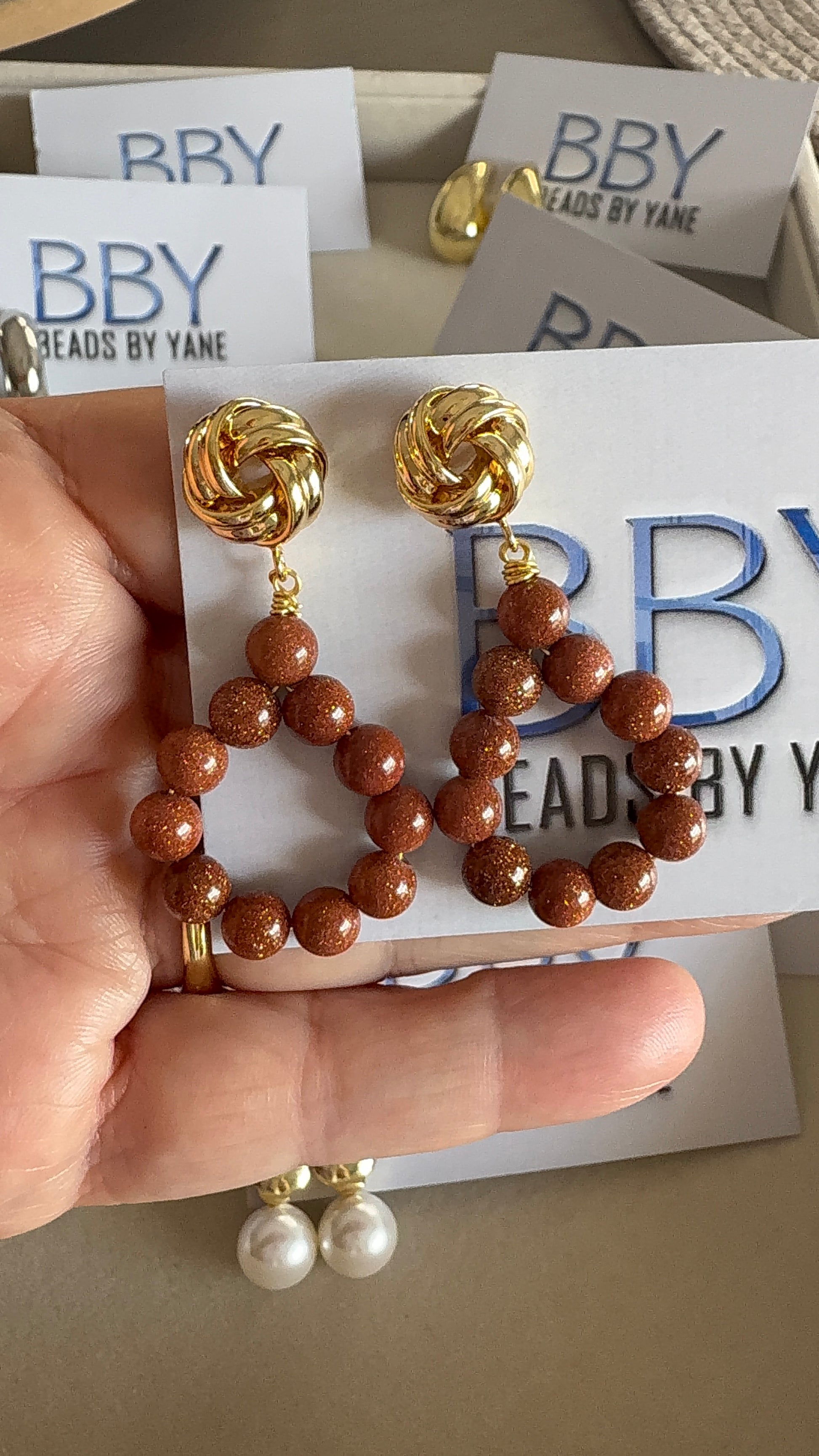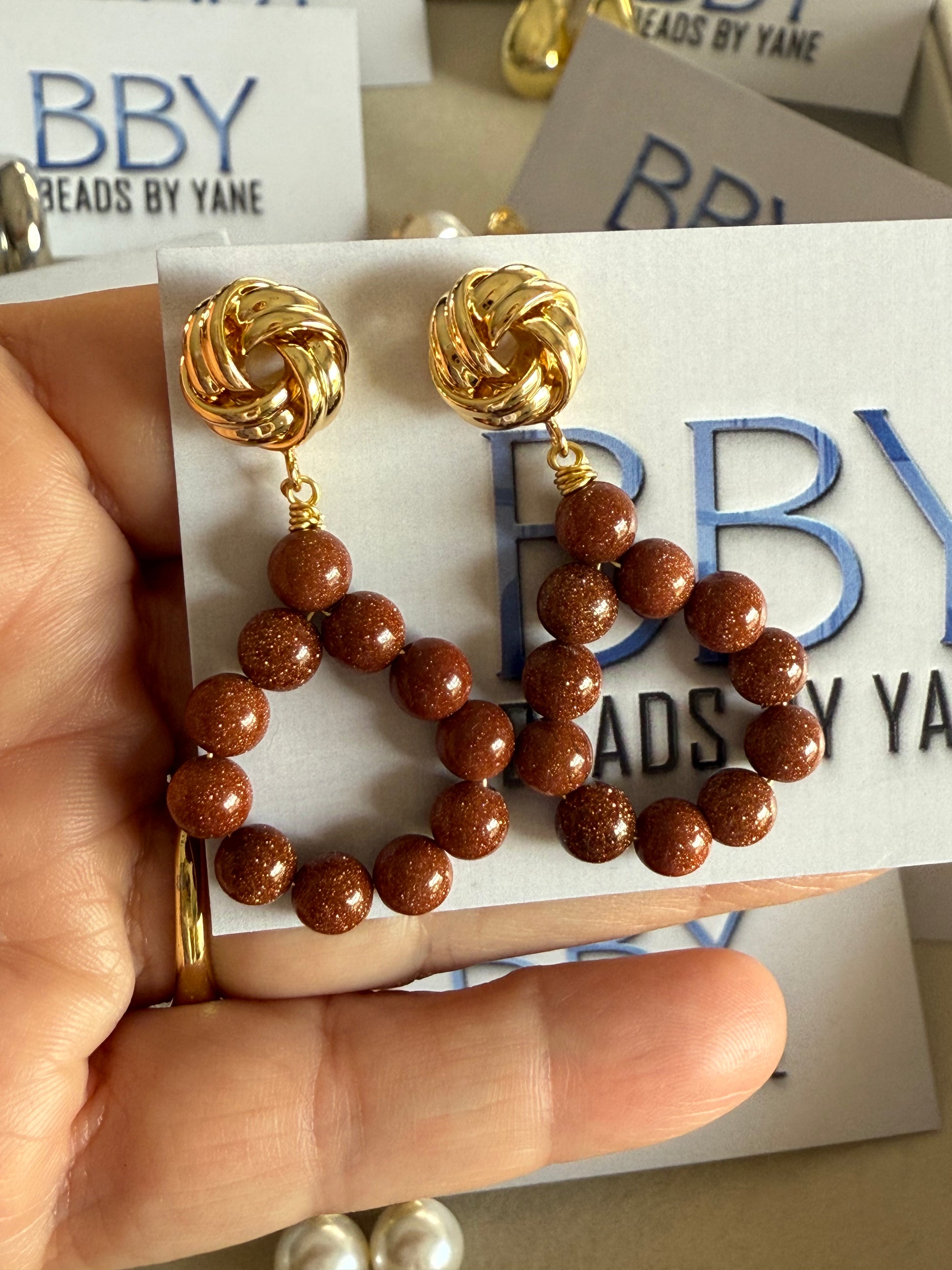 Sparkling brown gemstone beads form a bold hoop, paired with elegant gold knot studs — a perfect mix of earthy tones and timeless shine.