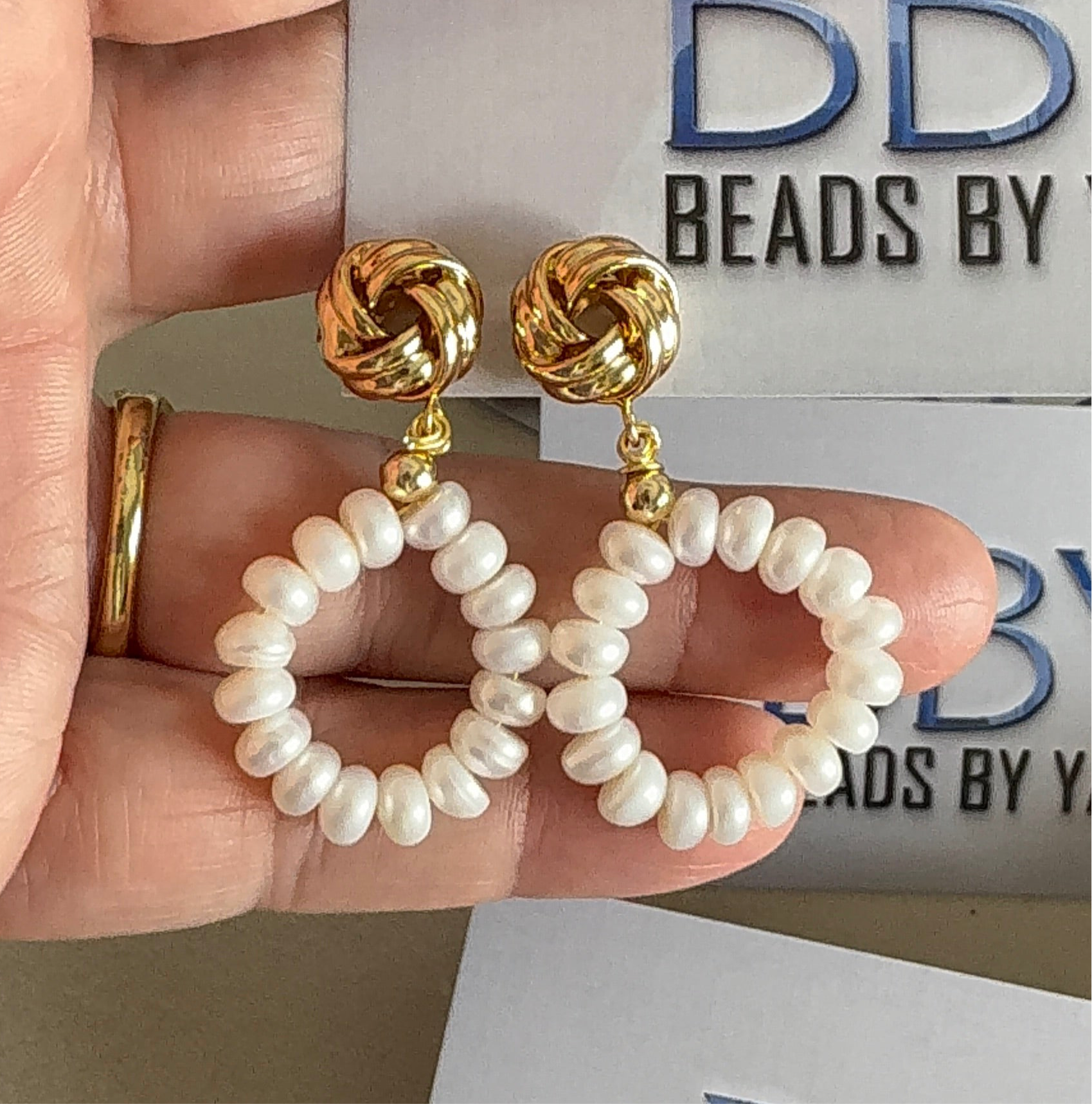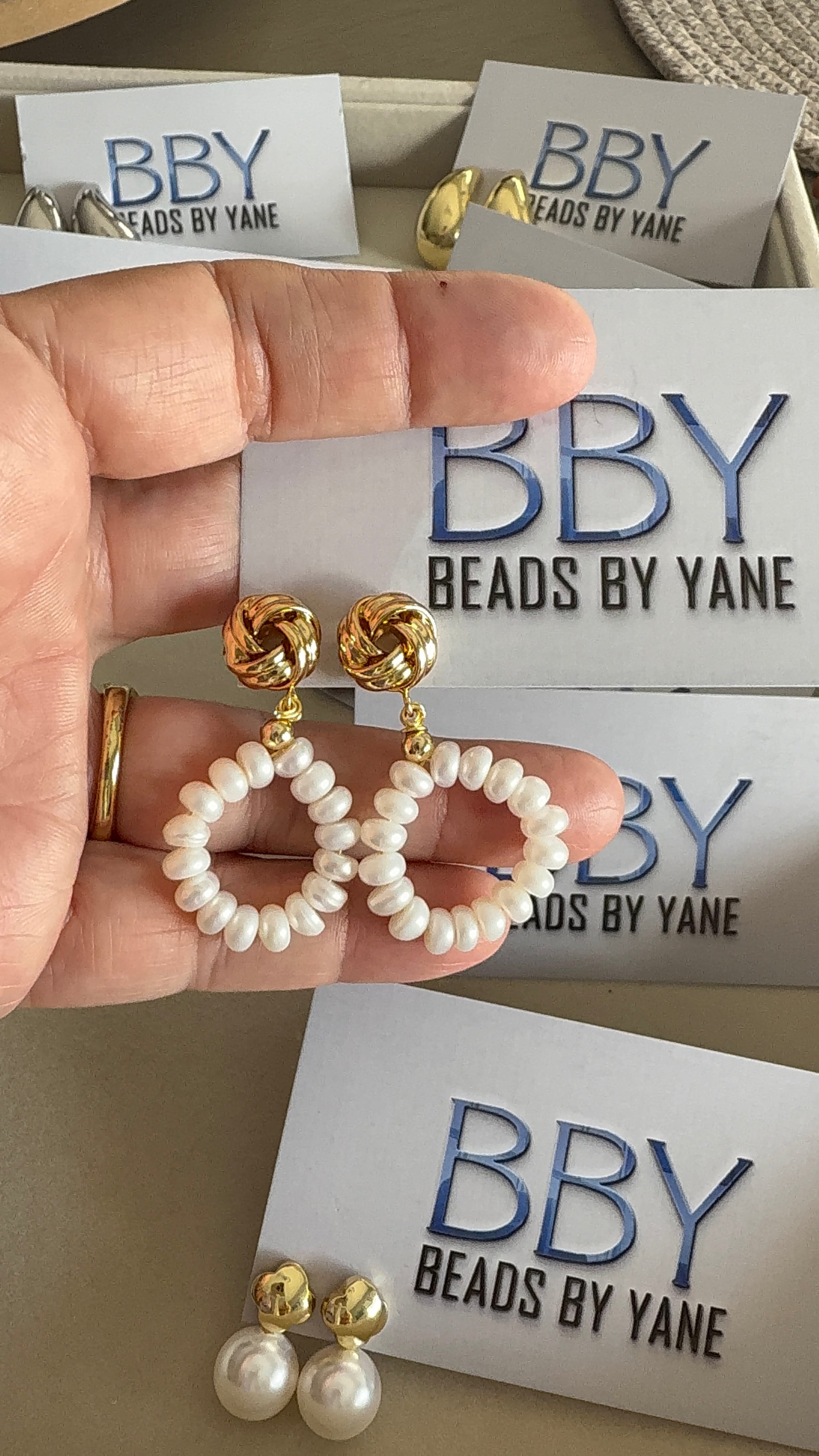 Elegant gold knot studs paired with delicate freshwater pearl hoops — a timeless blend of classic charm and modern style.