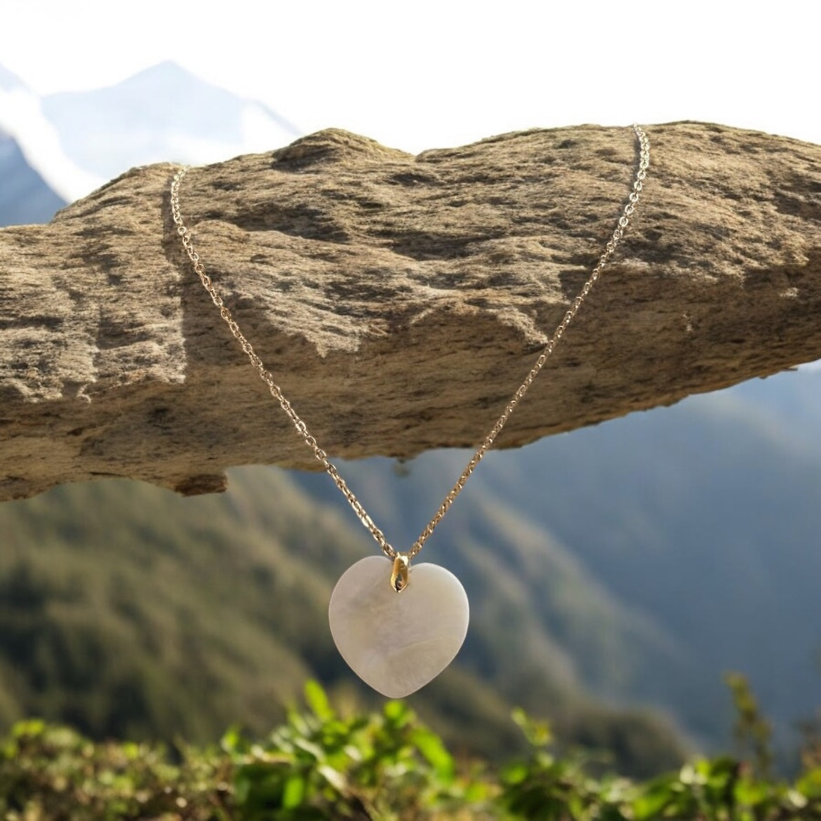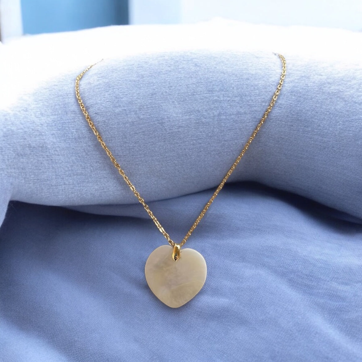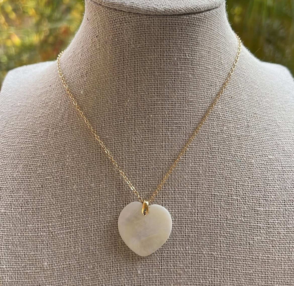 Indulge in elegance with our mother of pearl heart chain necklace. Featuring a stunning heart-shaped design, this necklace is the perfect statement piece for any occasion. Let the iridescent beauty of Mother Nature shine around your neck. Elevate your style and make a lasting impression.