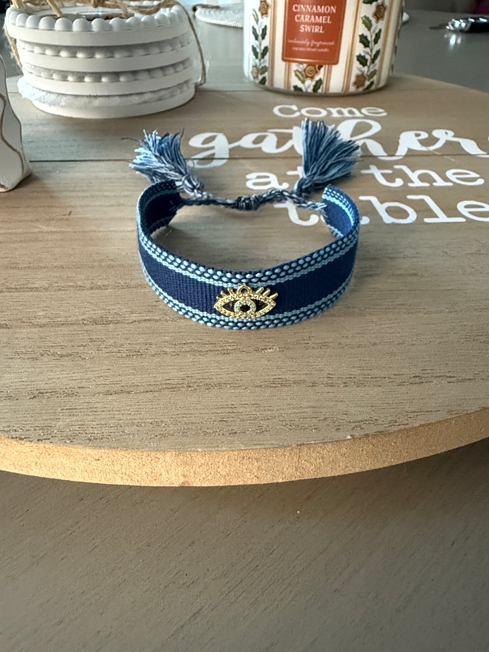 Navy Blue Evil Eye Woven Bracelet – Adjustable Boho Protection Jewelry