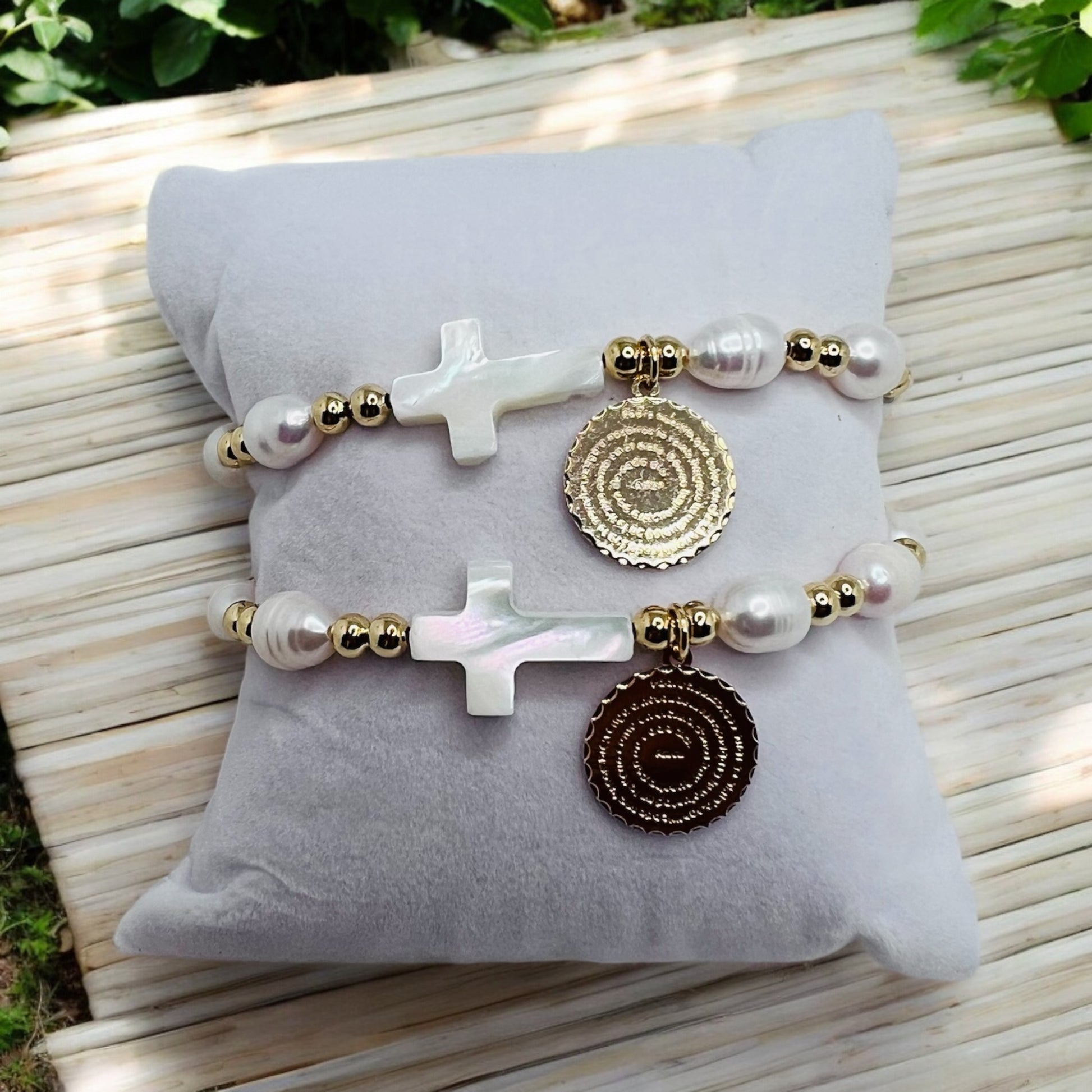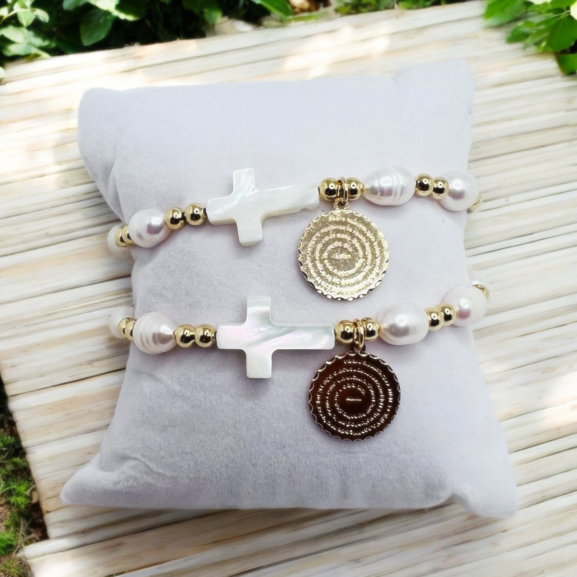 Experience the power of faith with our Padre nuestro bracelet. Adorned with pearls and a charm featuring the famous Our Father prayer, this bracelet is a beautiful reminder of the importance of prayer and the strength it brings. Add this meaningful piece to your collection today!