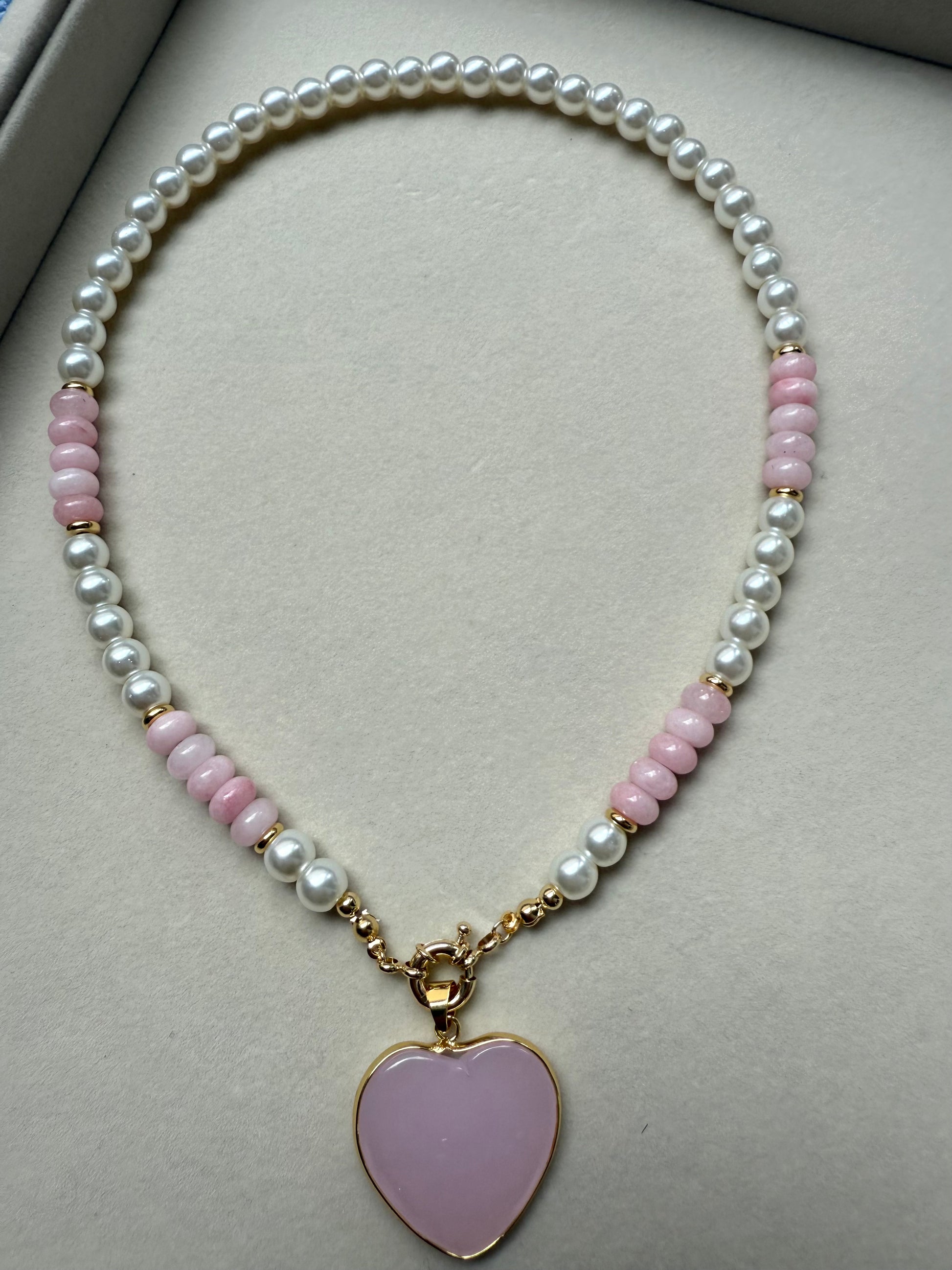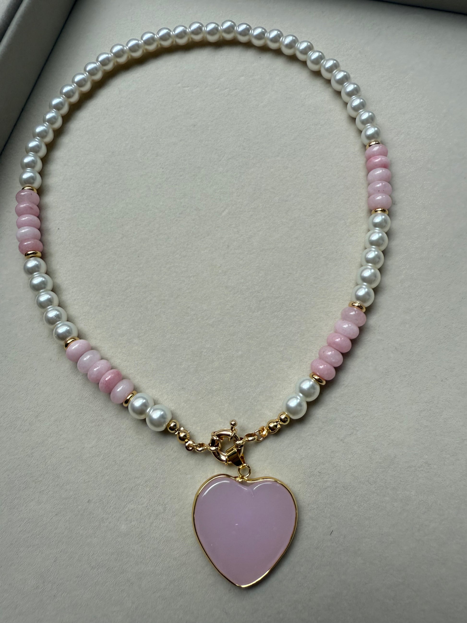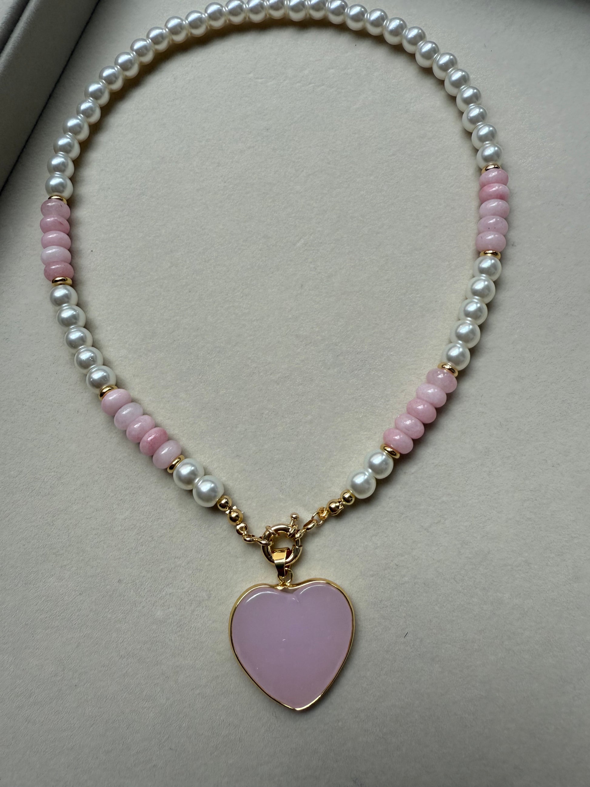 Pink heart pearl necklace