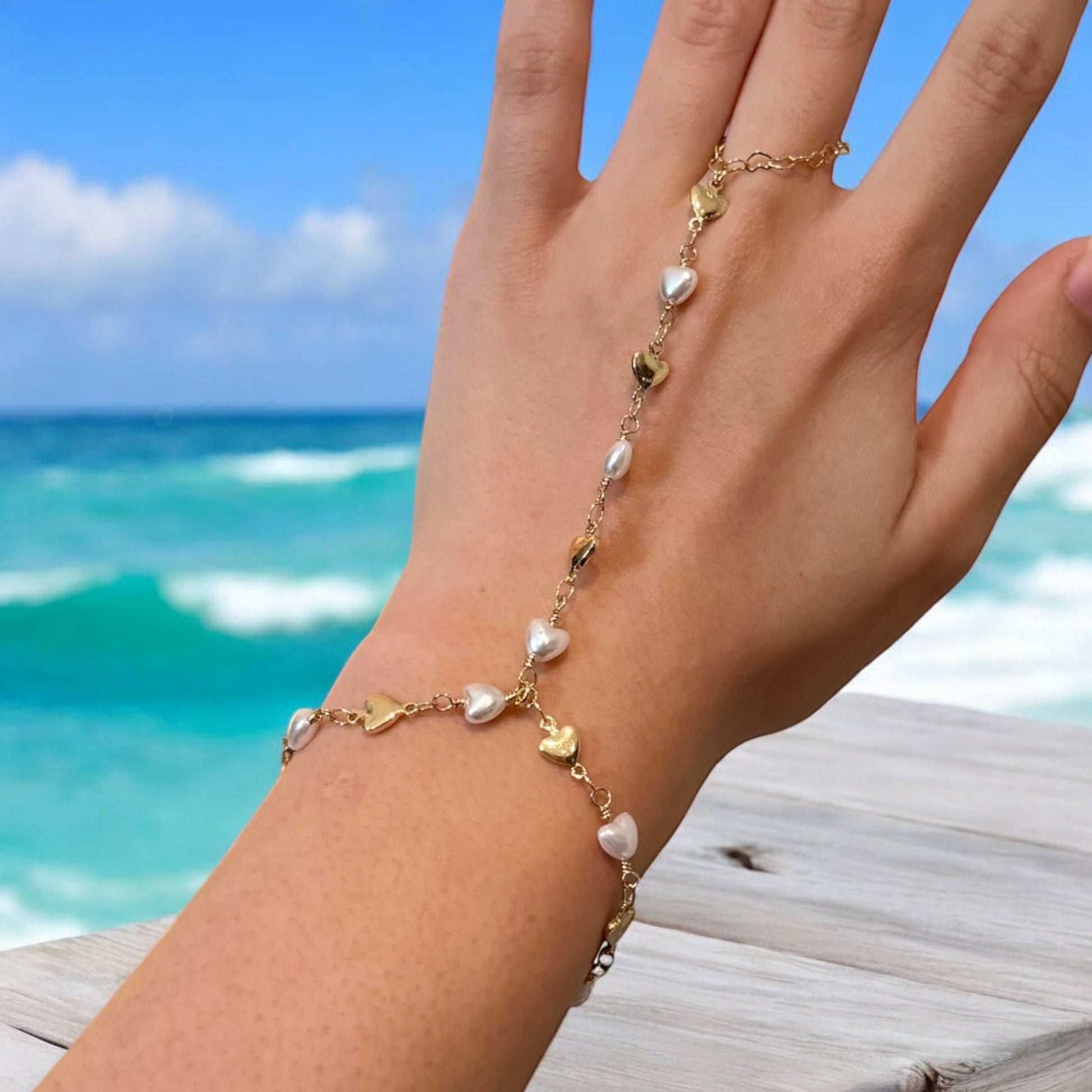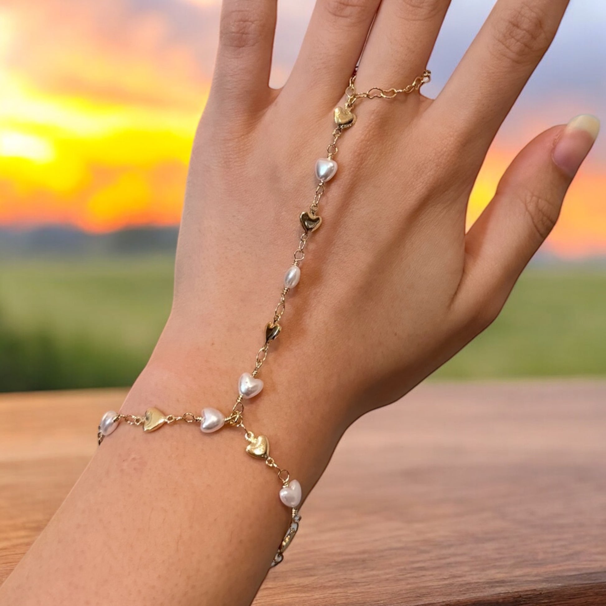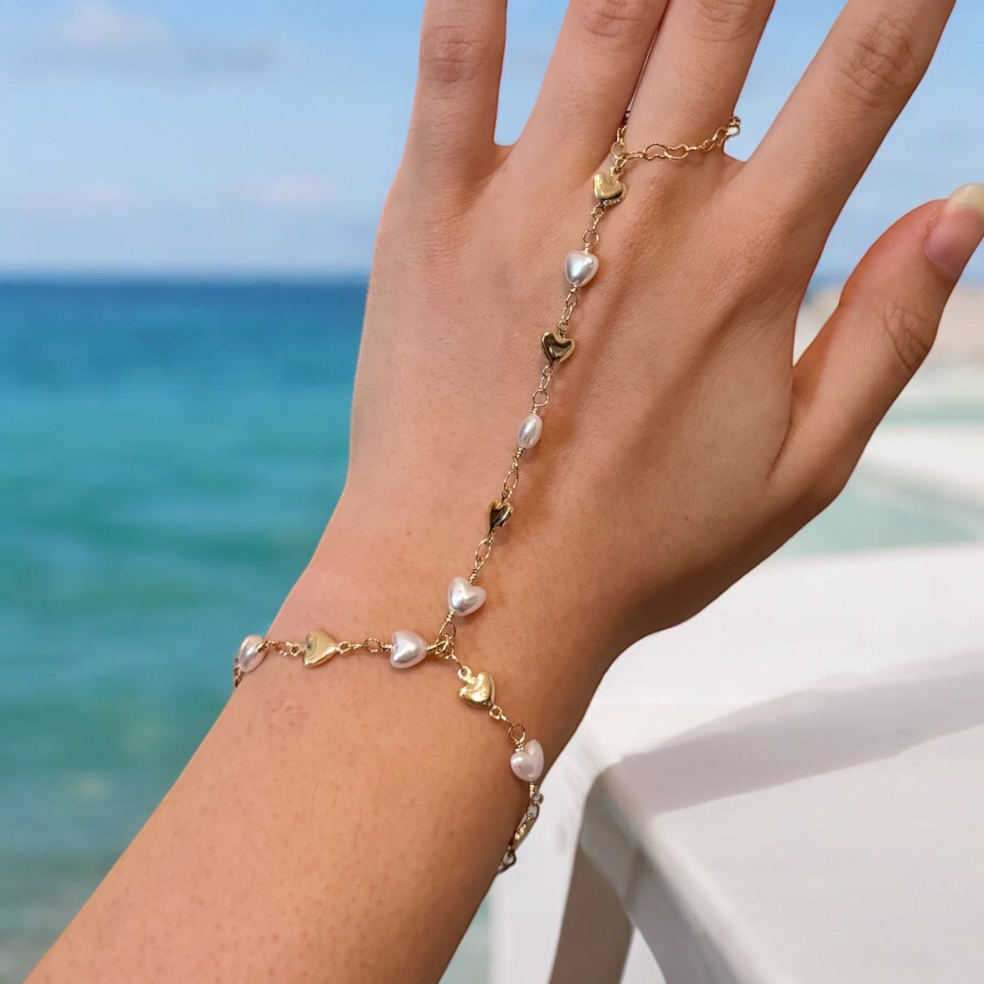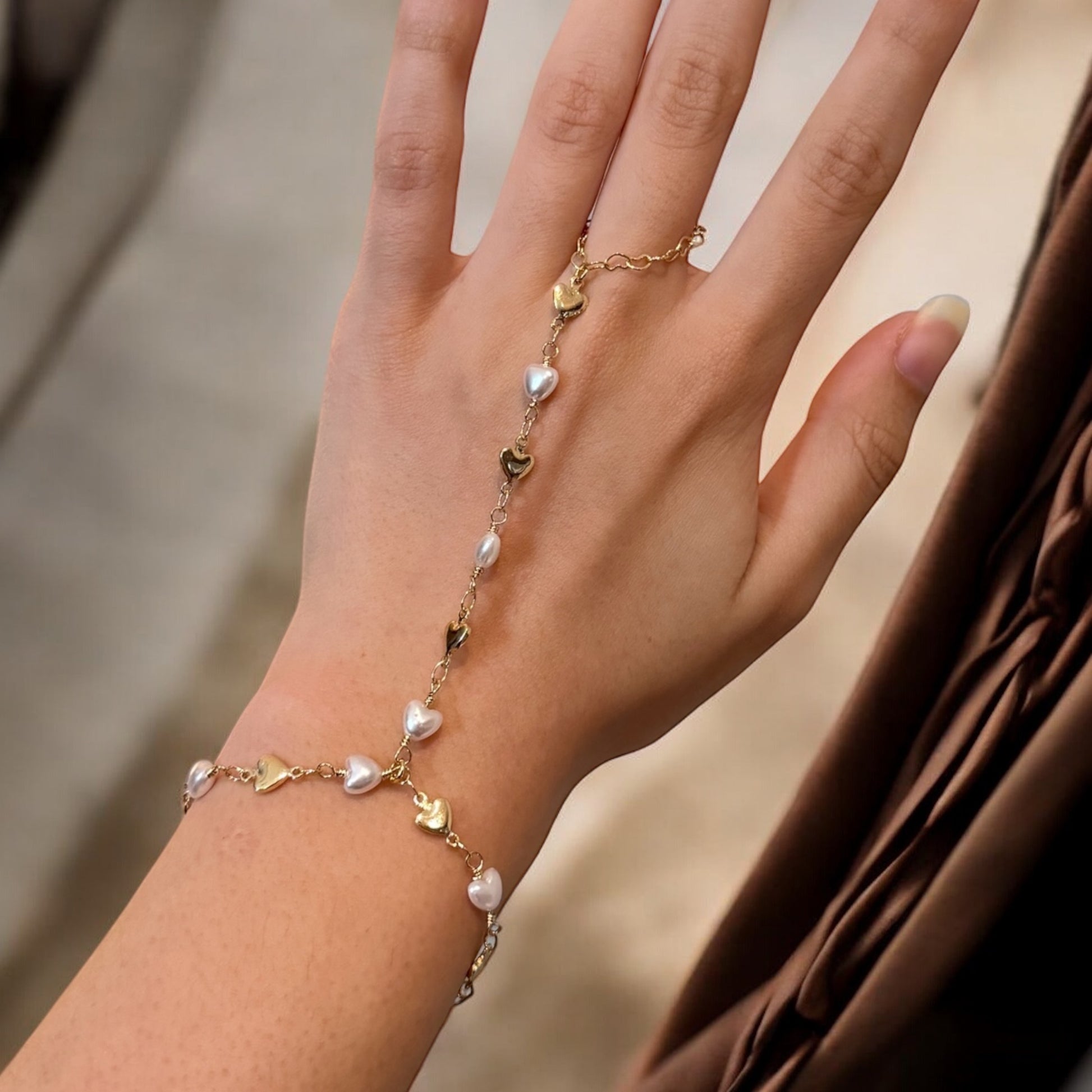 Elevate your style with our elegant ring bracelet pearls - the perfect fusion of fashion and functionality. This finger bracelet adds a touch of sophistication to any outfit, while also keeping your hands free for whatever the day brings. Stand out from the rest with this unique accessory!