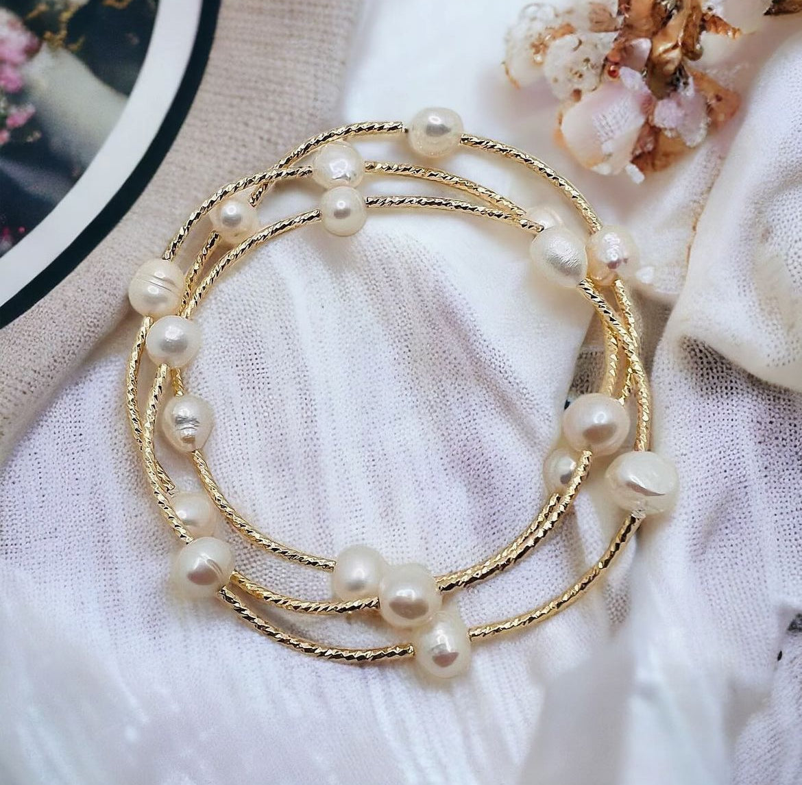 Introducing our Set of 3 Gold Bangles - the perfect addition to any accessory collection. This set includes 3 stylish and versatile bracelets that can be worn separately or stacked for a bold statement. Made with high-quality materials, these bangles add a touch of elegance and sophistication to any outfit.Elegant set perfect for any occasion.