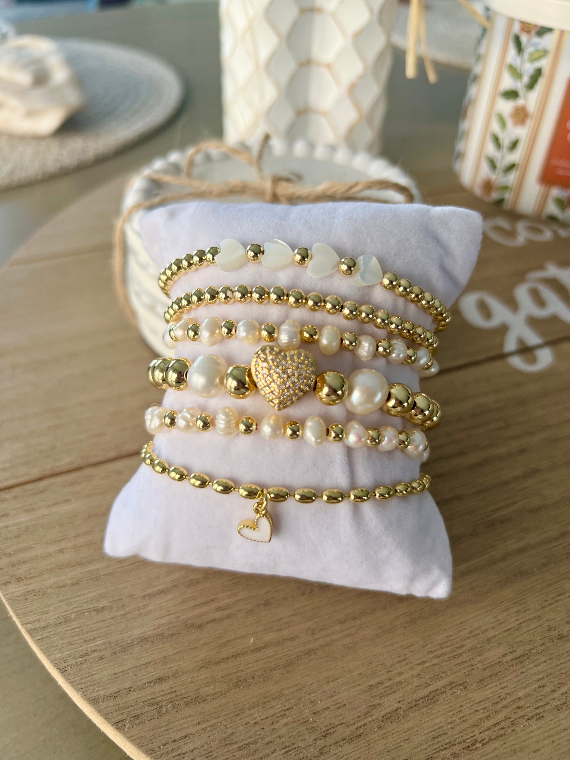 Set of six bracelets pearls and gold