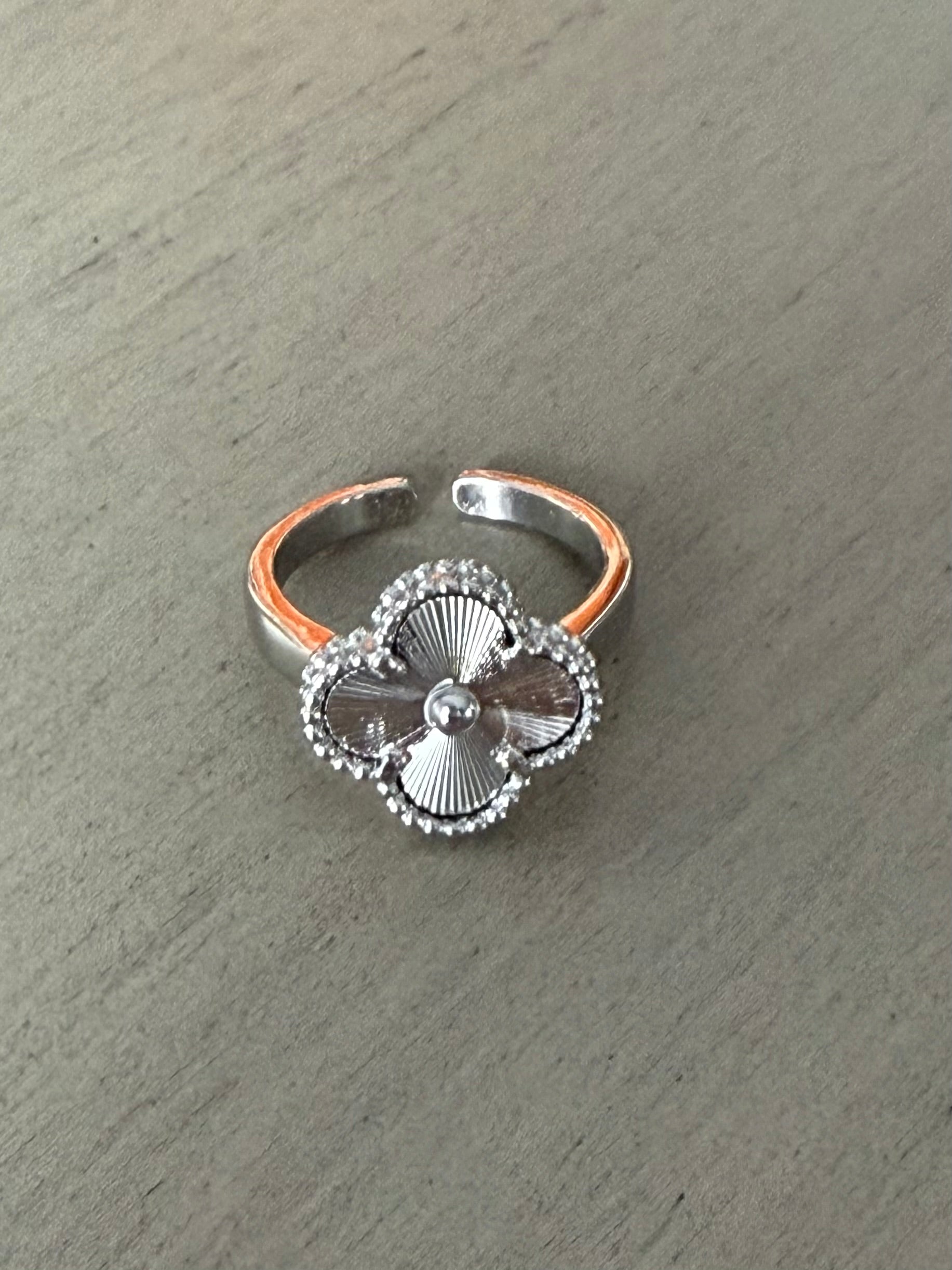 Silver clover ring